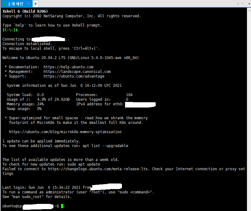 5. 처음 EC2를 생성한 경우 비밀번호가 설정이 안 되어 있는데 설정하기 위해,