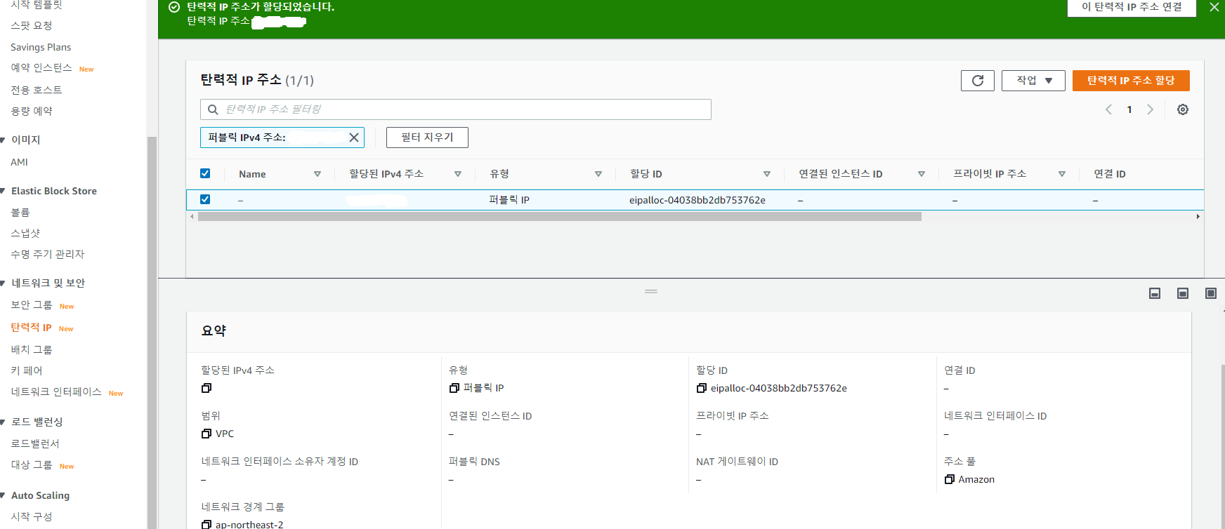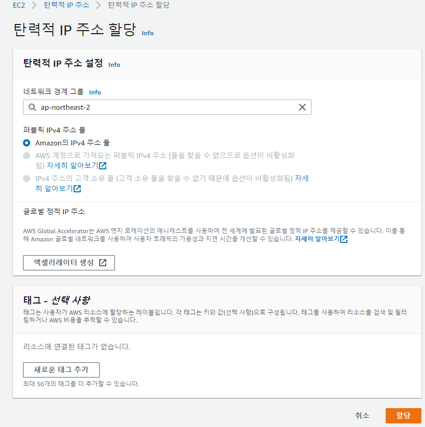 Elastic IP(탄력적 IP) 할당 하기