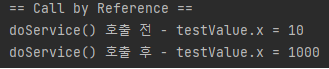 System.out.println("doService() 호출 후 - testValue.x = " + testValue.x);