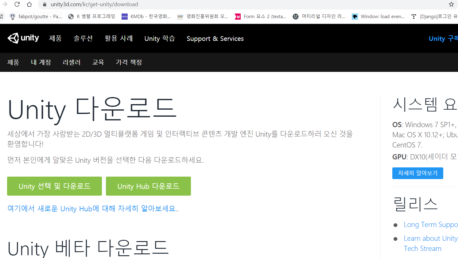 https://unity3d.com/kr/get-unity/download