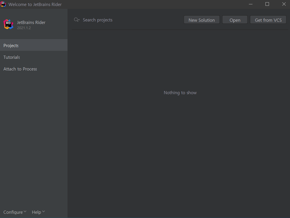 3. 다운로드 받은 Rider 설치파일을 실행해서 설치 완료 후 실행하면 아래 화면과 같이 창이 뜹니다.