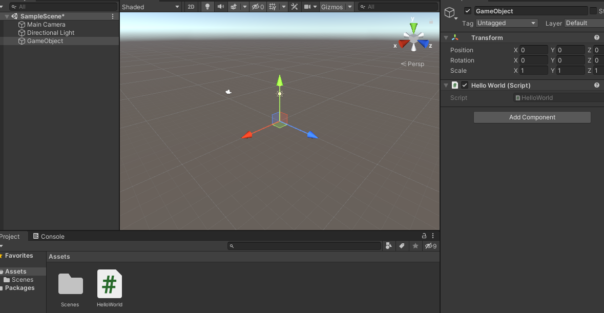 Debug.Log("Hello World");