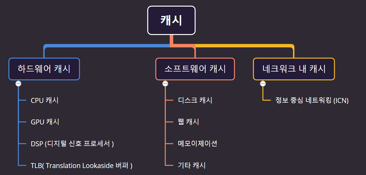 캐시 유형에 대해서는 하나하나 다 작성하려면 내용이 많아져서 글의 목적에 벗어나기에 일단 이런 유형이 있다 정도만 알고 계시면 될듯합니다.