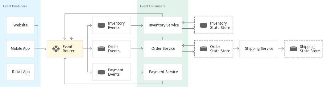 - 이벤트 프로듀서가 생성한 원래 이벤트에 대한 응답을 실행하고 이 응답을 다운스트림으로 적절한 소비자에게 보내는 역할을 합니다.
